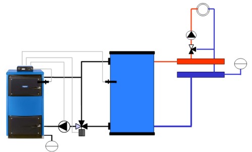 Буферная емкость должна принимать как минимум тепло, производимое разовой загрузкой котла!